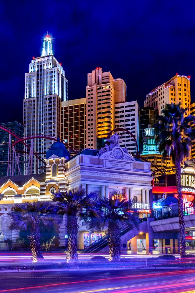 Wallpaper Houses and a statue of liberty in the night Las Vegas, USA