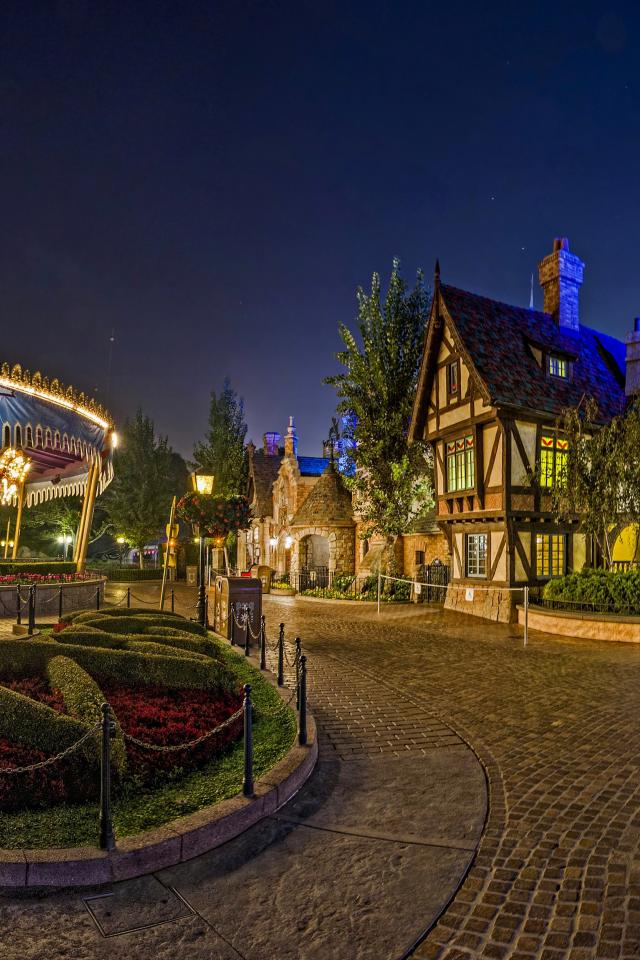 Wallpaper Carousels in garlands in the park Disneyland, California. USA