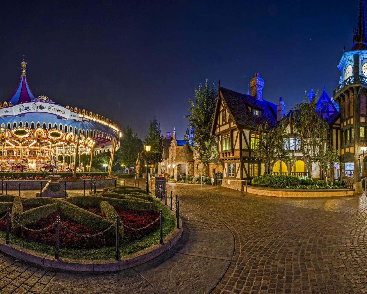 Wallpaper Carousels in garlands in the park Disneyland, California. USA