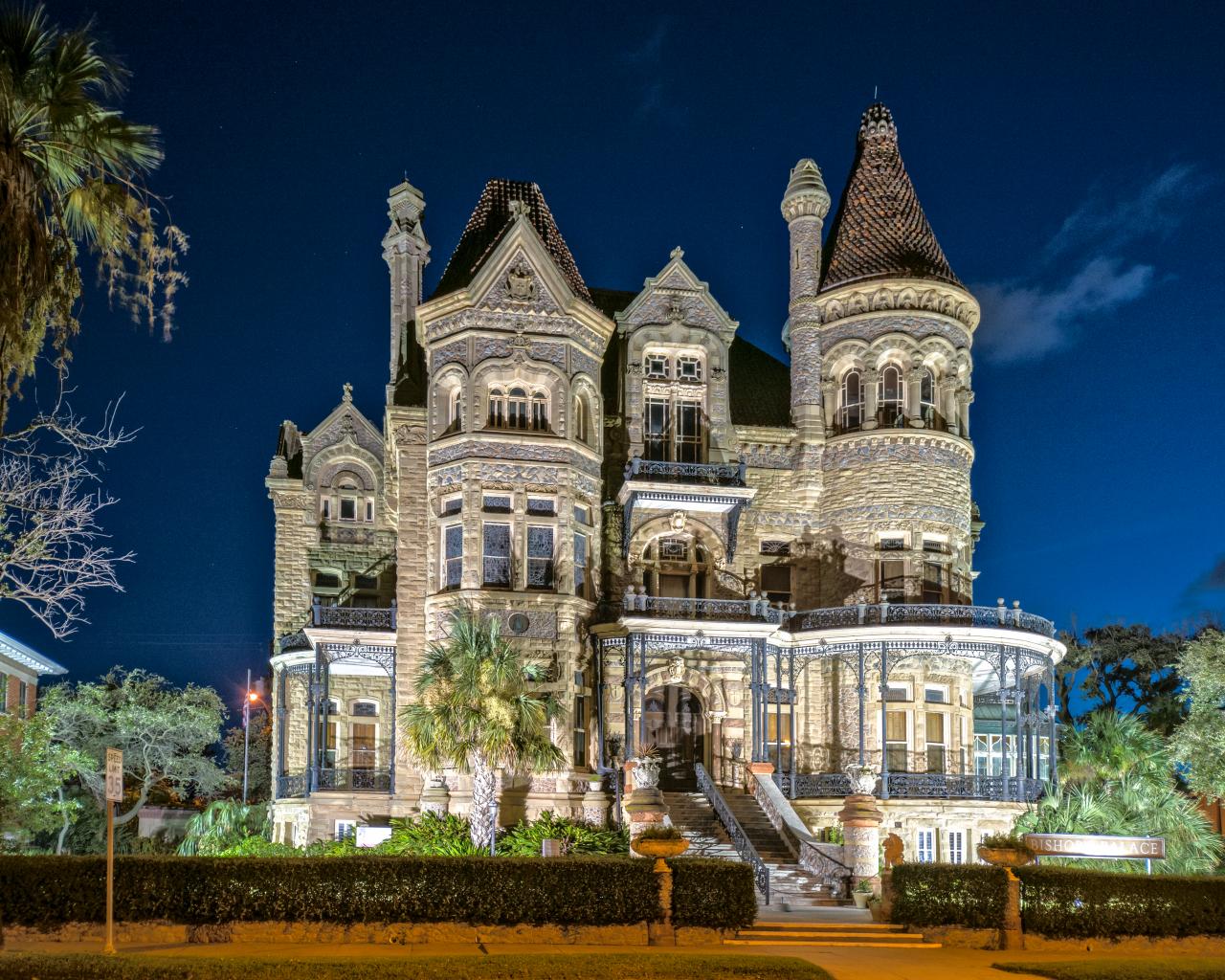 Wallpaper Beautiful mansion at night in the city of Galveston, Texas