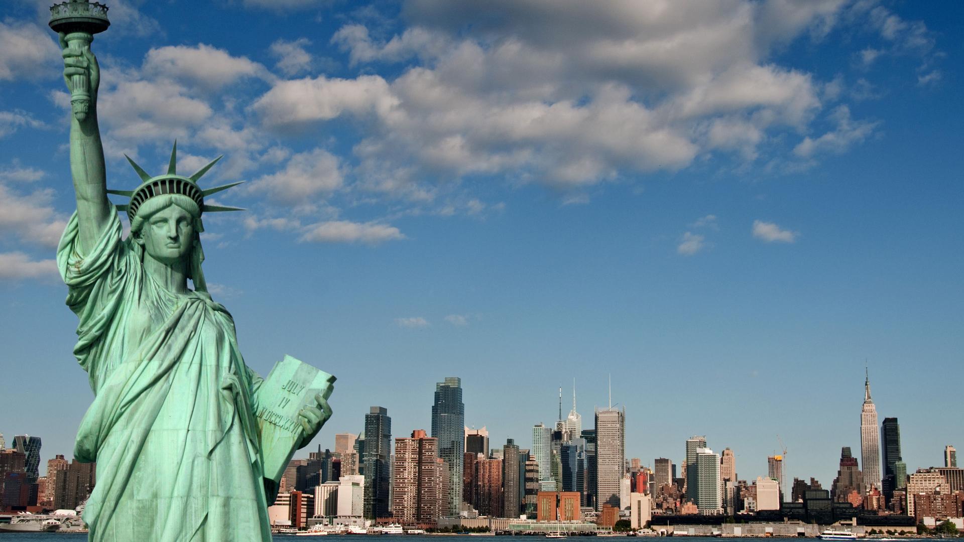 Wallpaper Statue of Liberty against the blue sky, USA