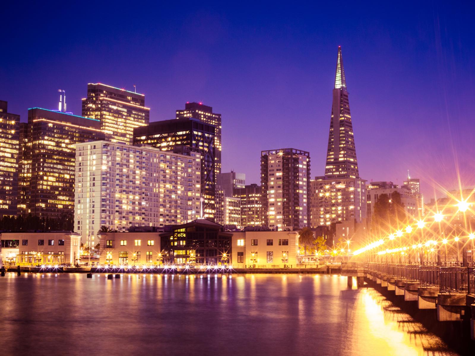 Wallpaper View of the night skyscrapers of San Francisco, USA