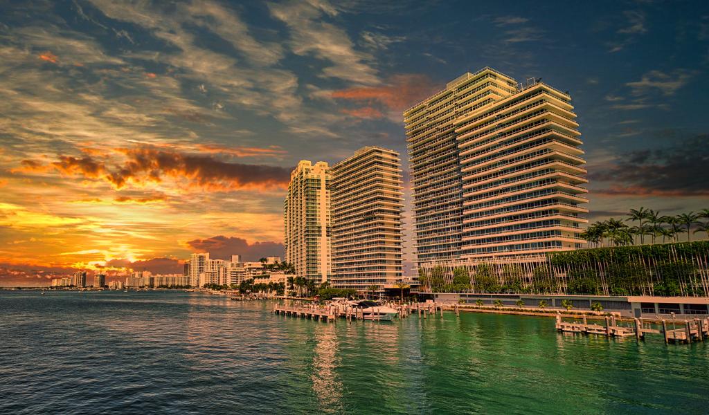 Wallpaper Miami skyscrapers at sunset, USA