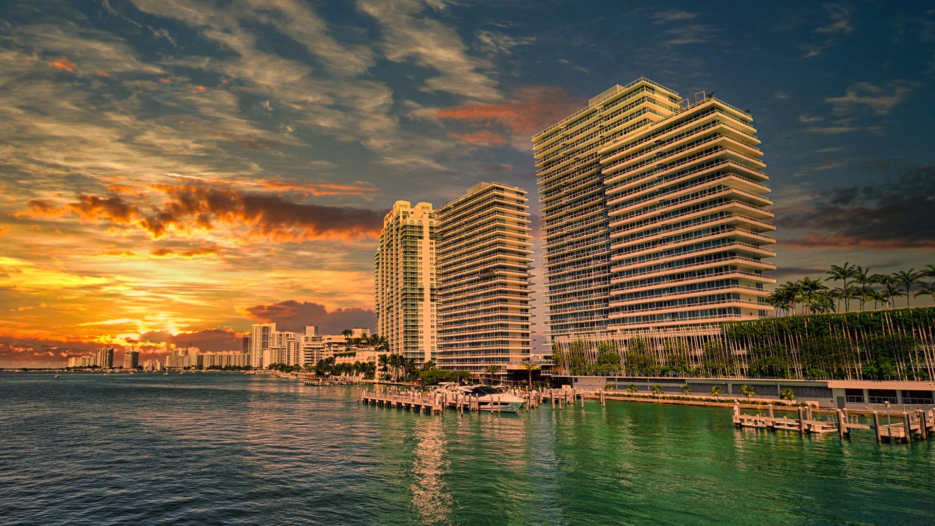 Wallpaper Miami skyscrapers at sunset, USA