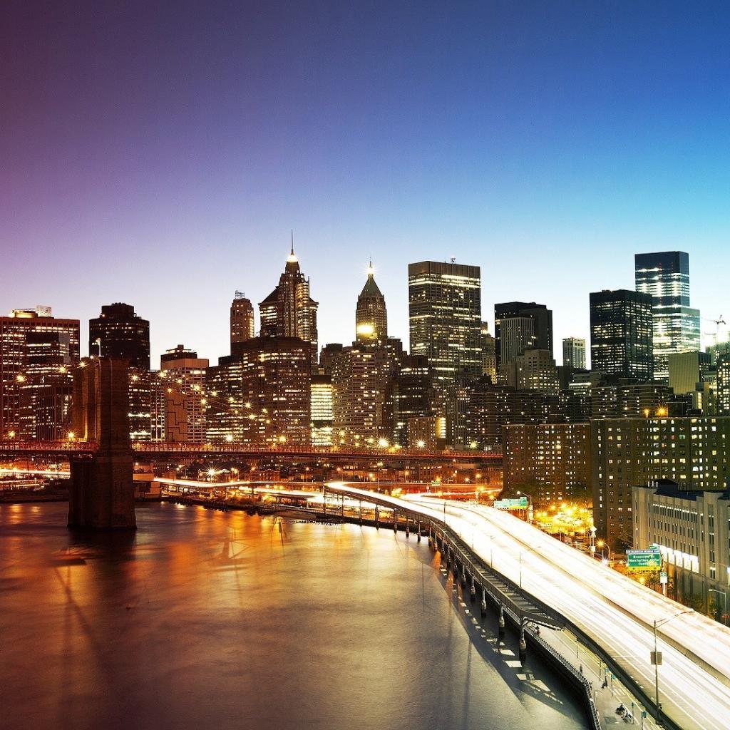 Wallpaper Brooklyn Bridge and the night lights of New York City