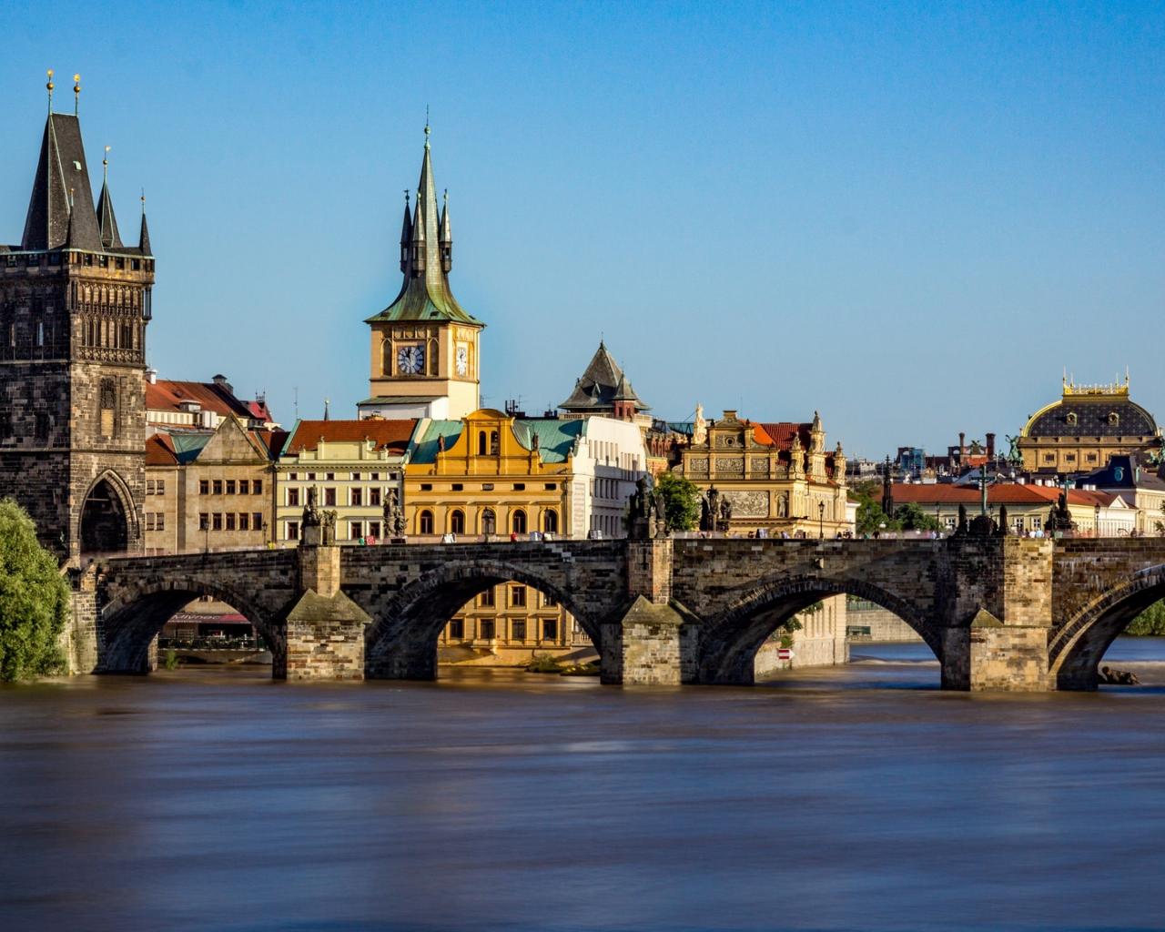 Wallpaper Medieval arched Charles Bridge, Prague, Czech Republic