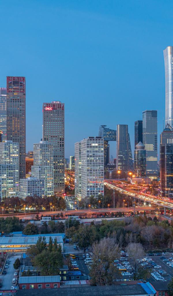 Wallpaper Big night city under blue sky