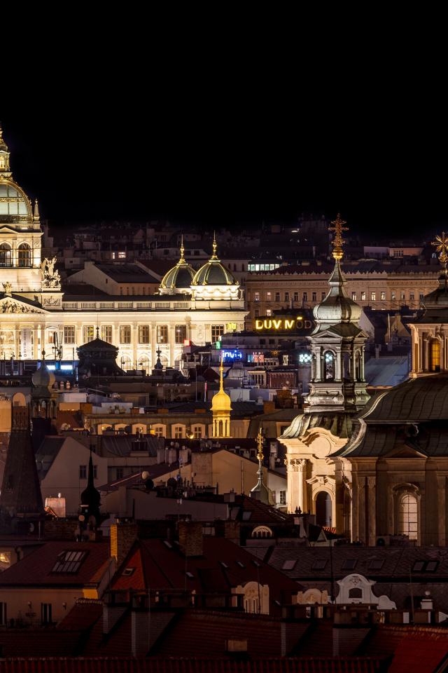 Wallpaper Beautiful aerial view of Prague at night, Czech Republic
