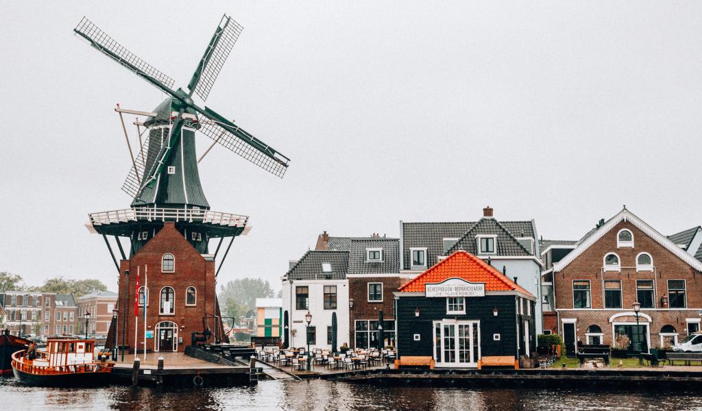 Wallpaper Old mill by the river in the evening, Netherlands