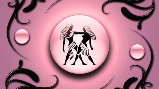 Wallpaper Gemini on a pink background with black ornament