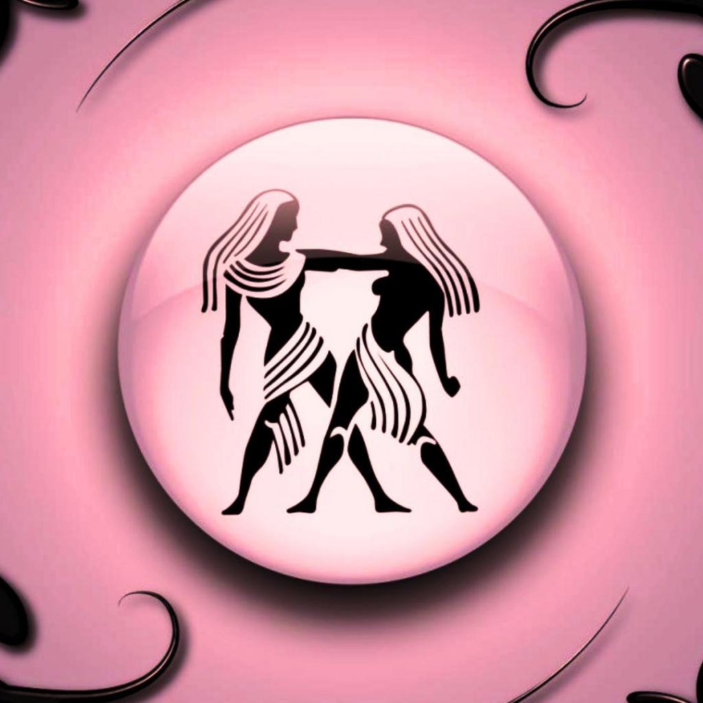 Wallpaper Gemini on a pink background with black ornament