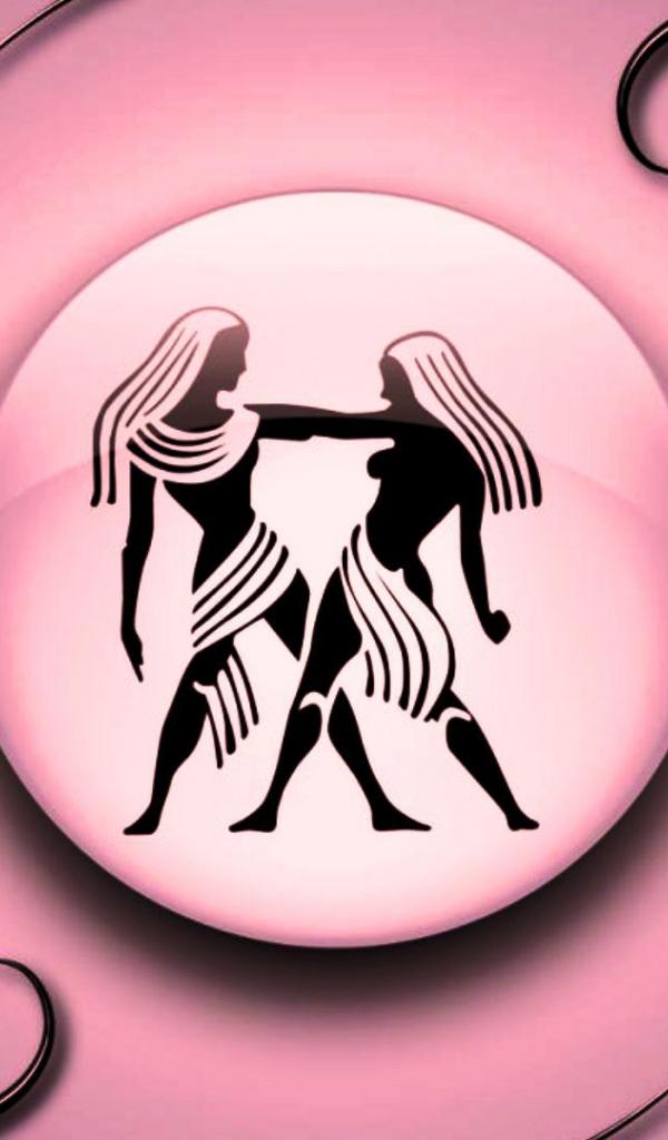 Wallpaper Gemini on a pink background with black ornament
