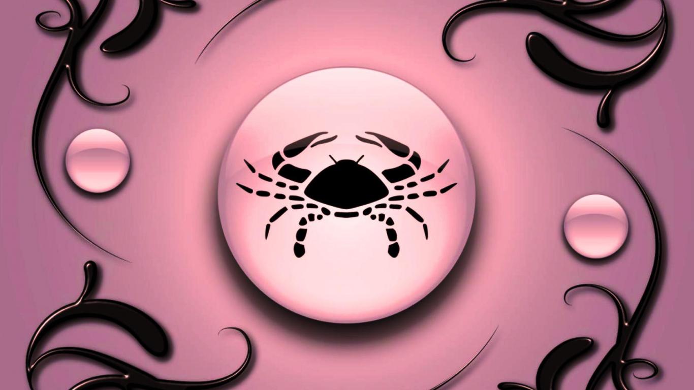 Wallpaper Cancer on a pink background with black ornament