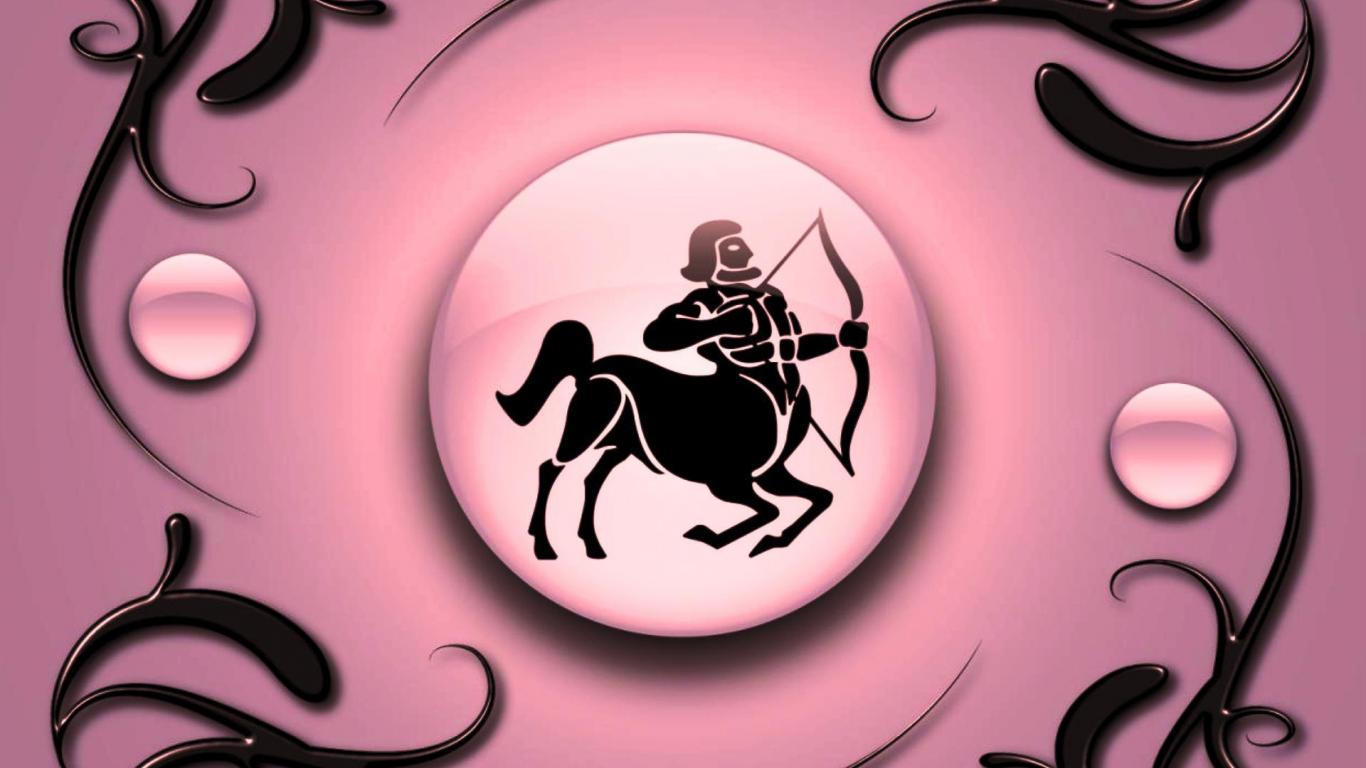 Wallpaper Sagittarius on a pink background with black ornament