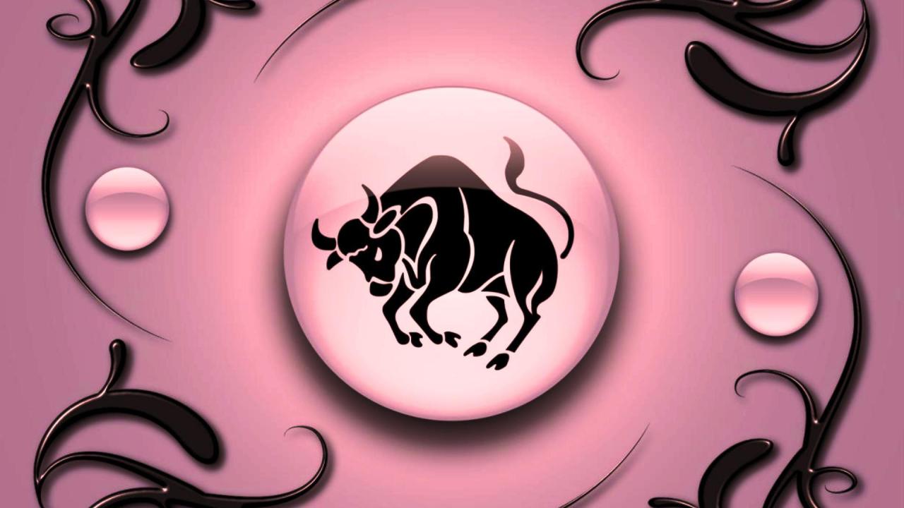 Wallpaper Taurus on a pink background with black ornament