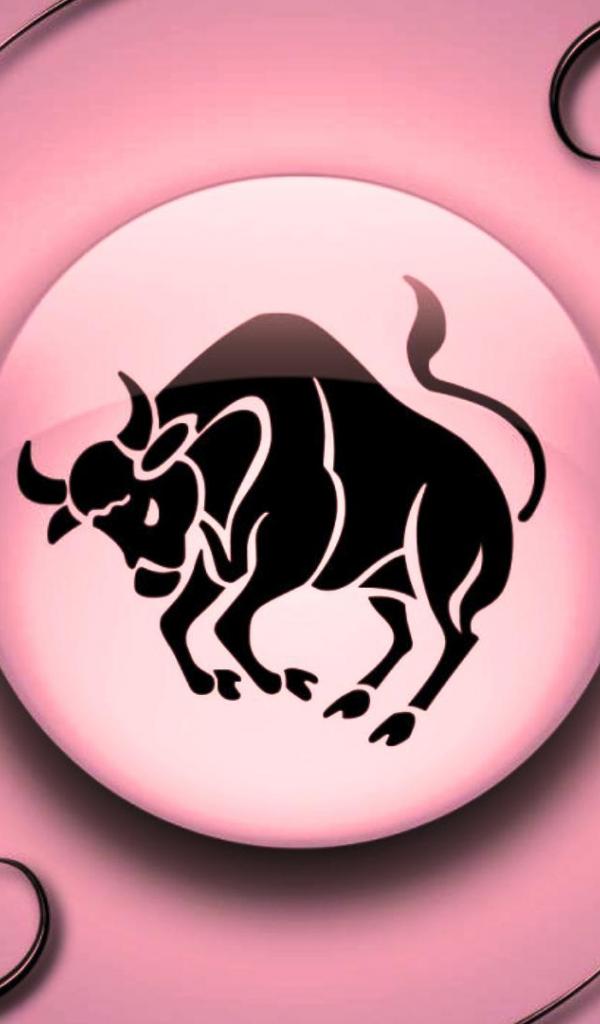 Wallpaper Taurus on a pink background with black ornament