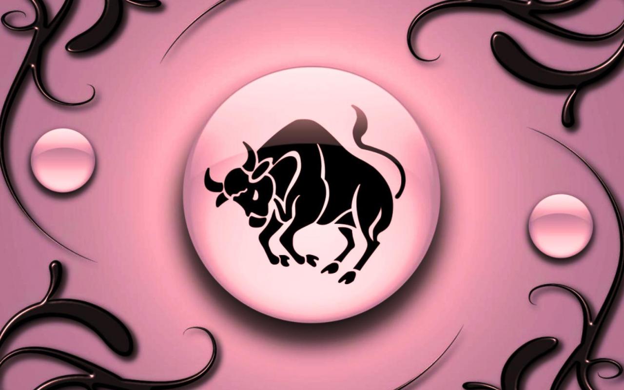 Wallpaper Taurus on a pink background with black ornament