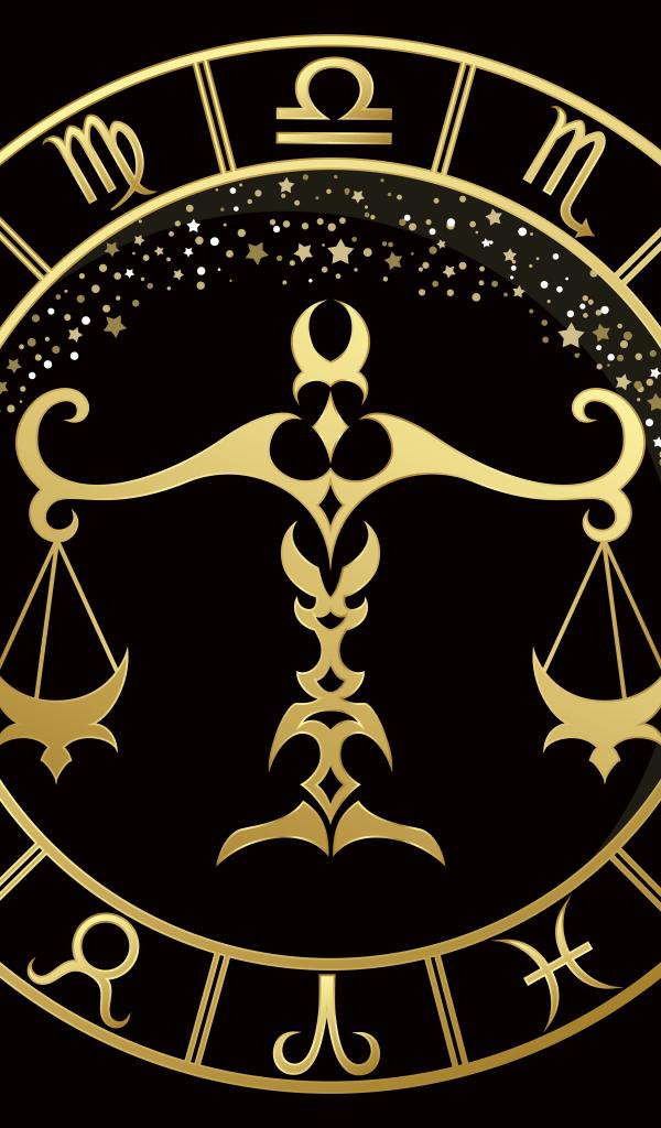 Wallpaper Golden zodiac sign Libra on a black background