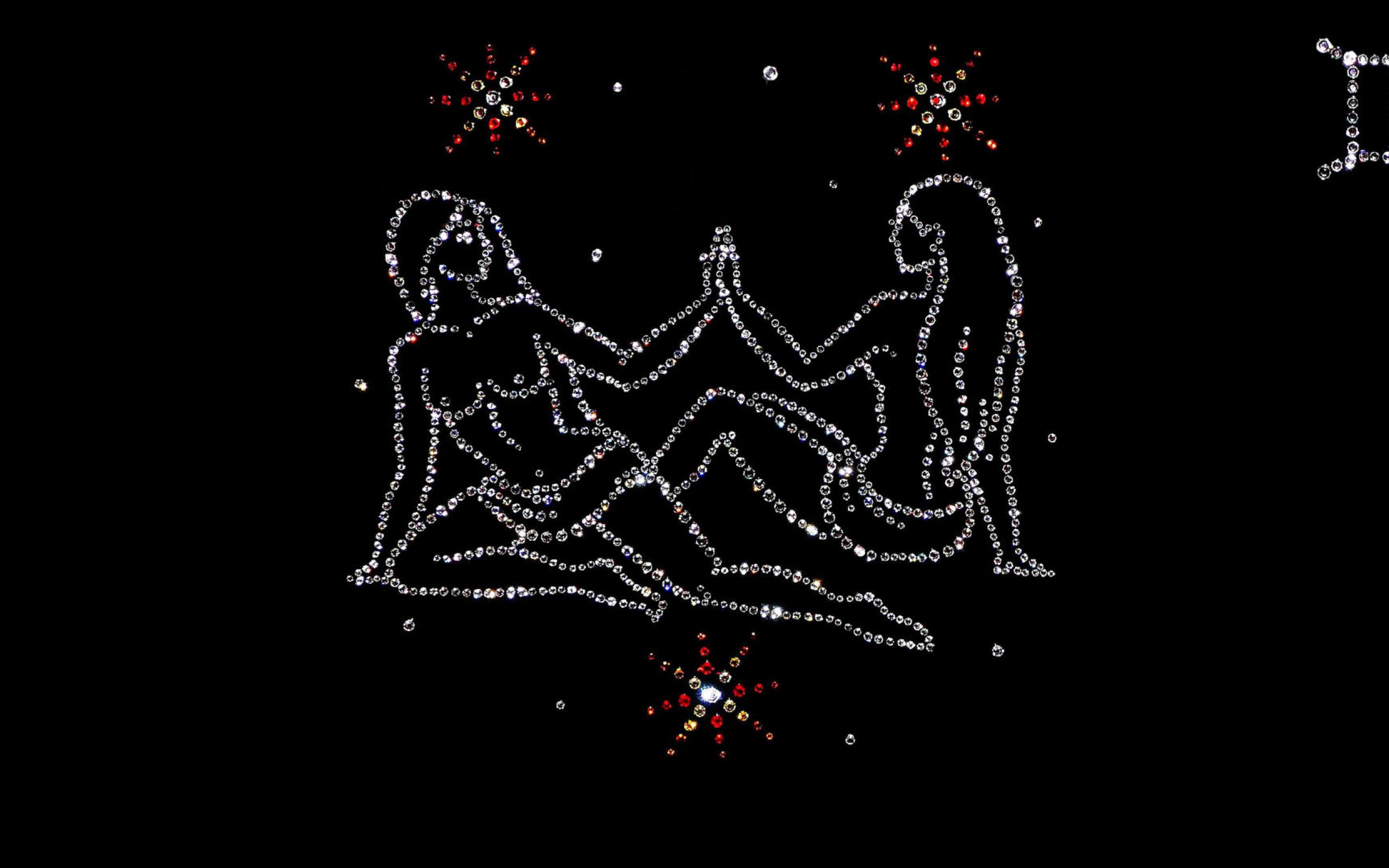 Wallpaper Shiny twins zodiac sign on a black background