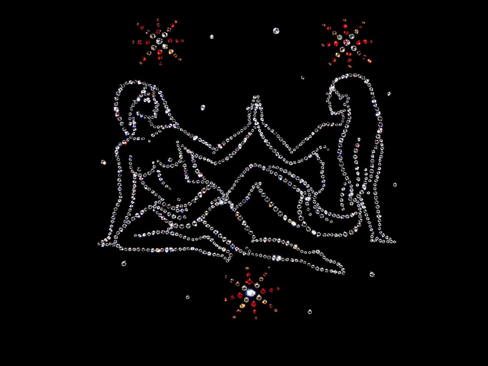 Wallpaper Shiny twins zodiac sign on a black background