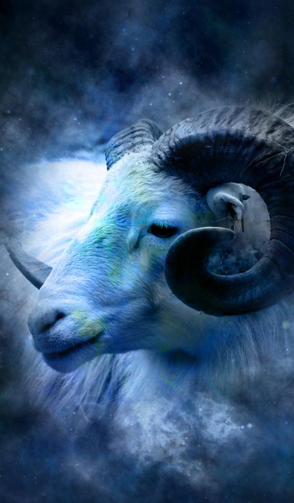 Wallpaper Beautiful zodiac sign Aries on blue background