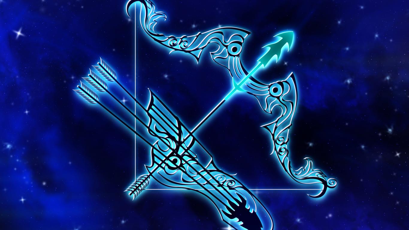 Wallpaper Beautiful zodiac sign Sagittarius on blue background