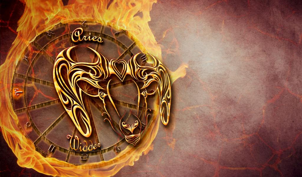 Wallpaper Fire zodiac sign aries on orange background