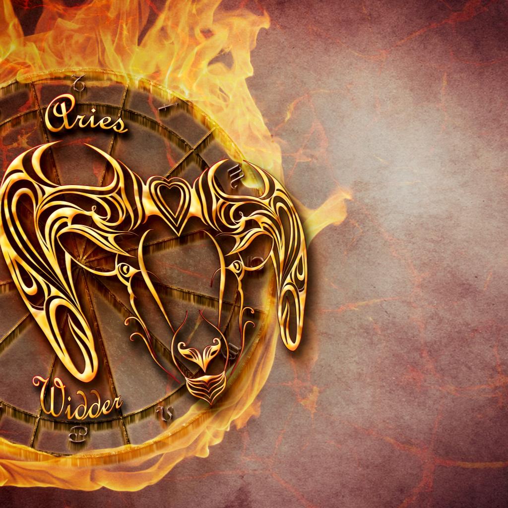 Wallpaper Fire zodiac sign aries on orange background
