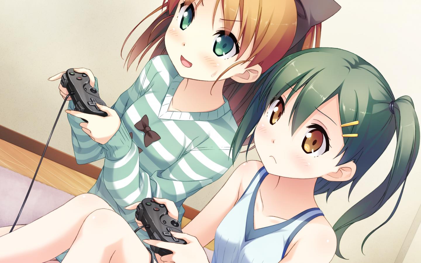 Wallpaper Two girls anime play video games