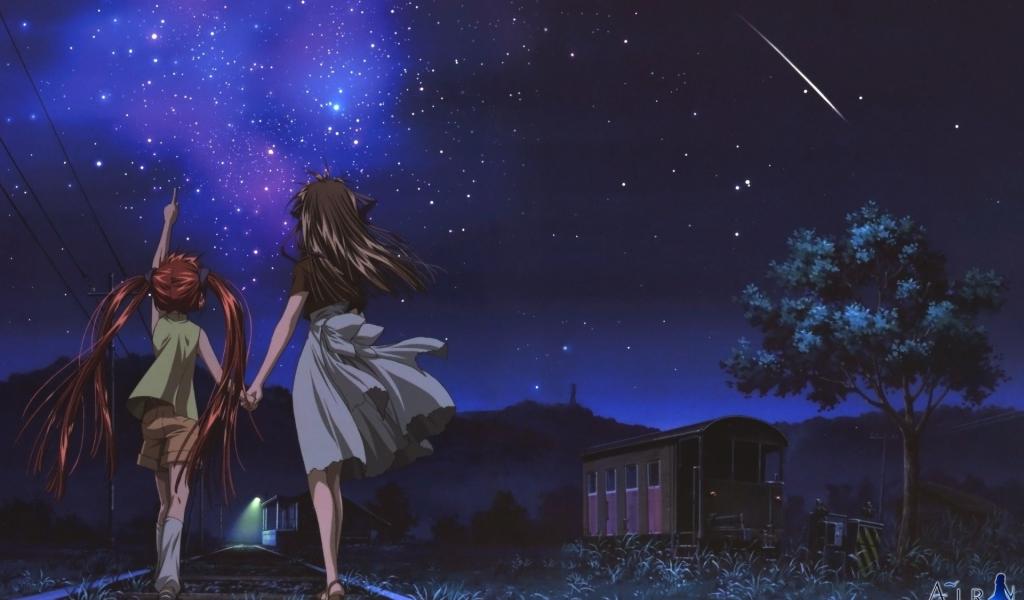 Wallpaper Girls look at the stars, anime