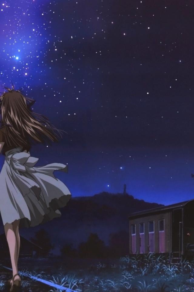 Wallpaper Girls look at the stars, anime