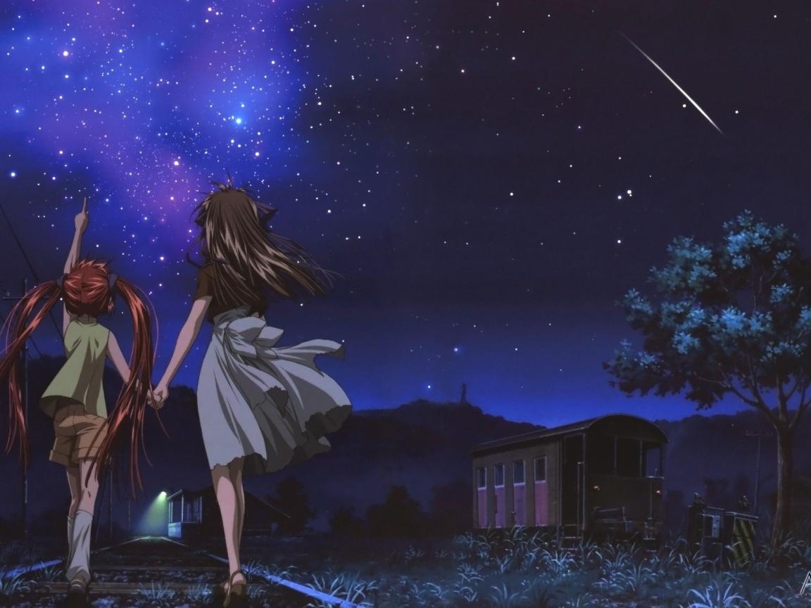 Wallpaper Girls look at the stars, anime