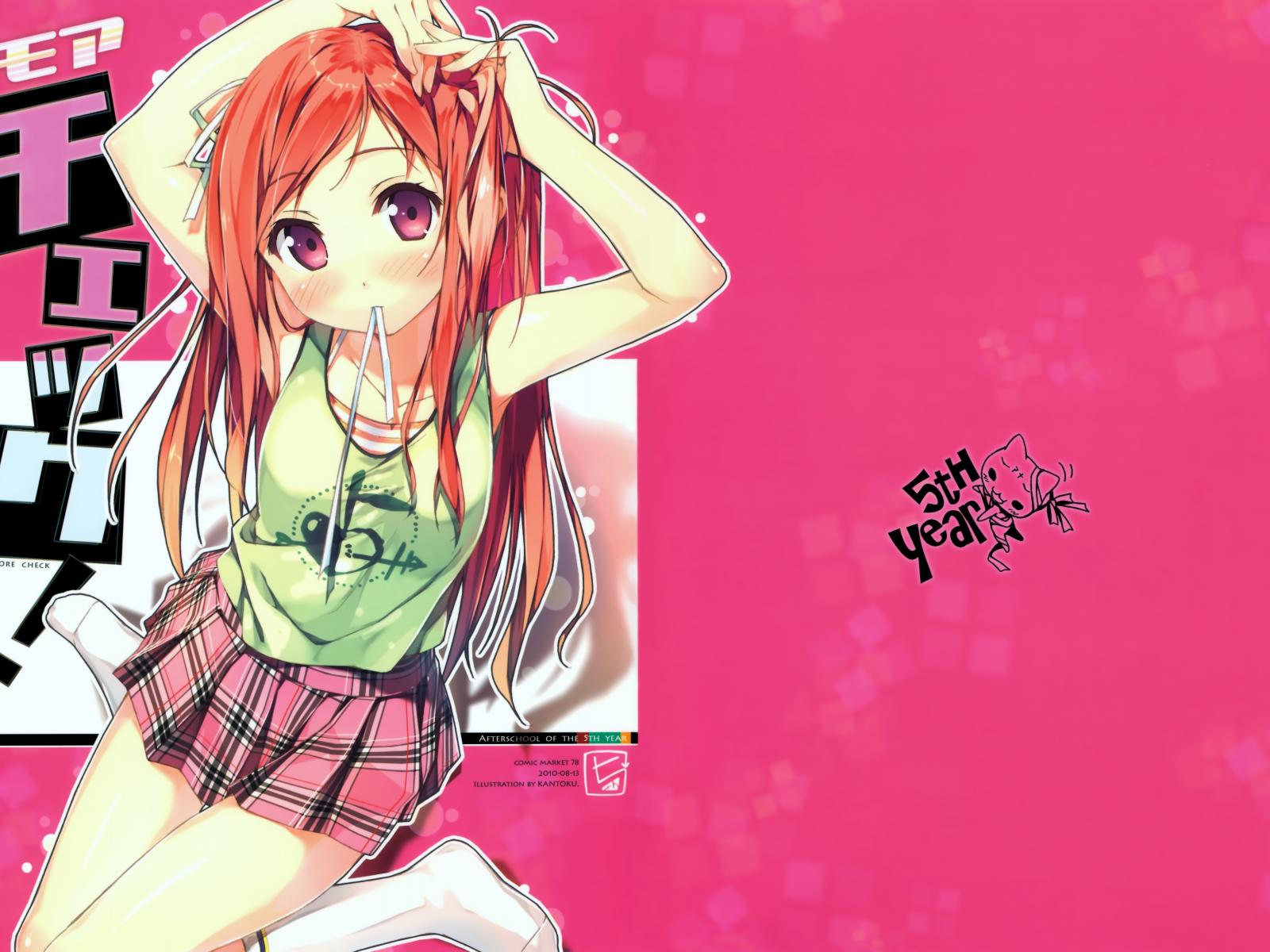 Wallpaper Anime Girl in socks on a pink background