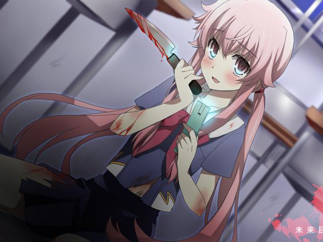 Wallpaper The girl with a bloody knife in the anime Yandere