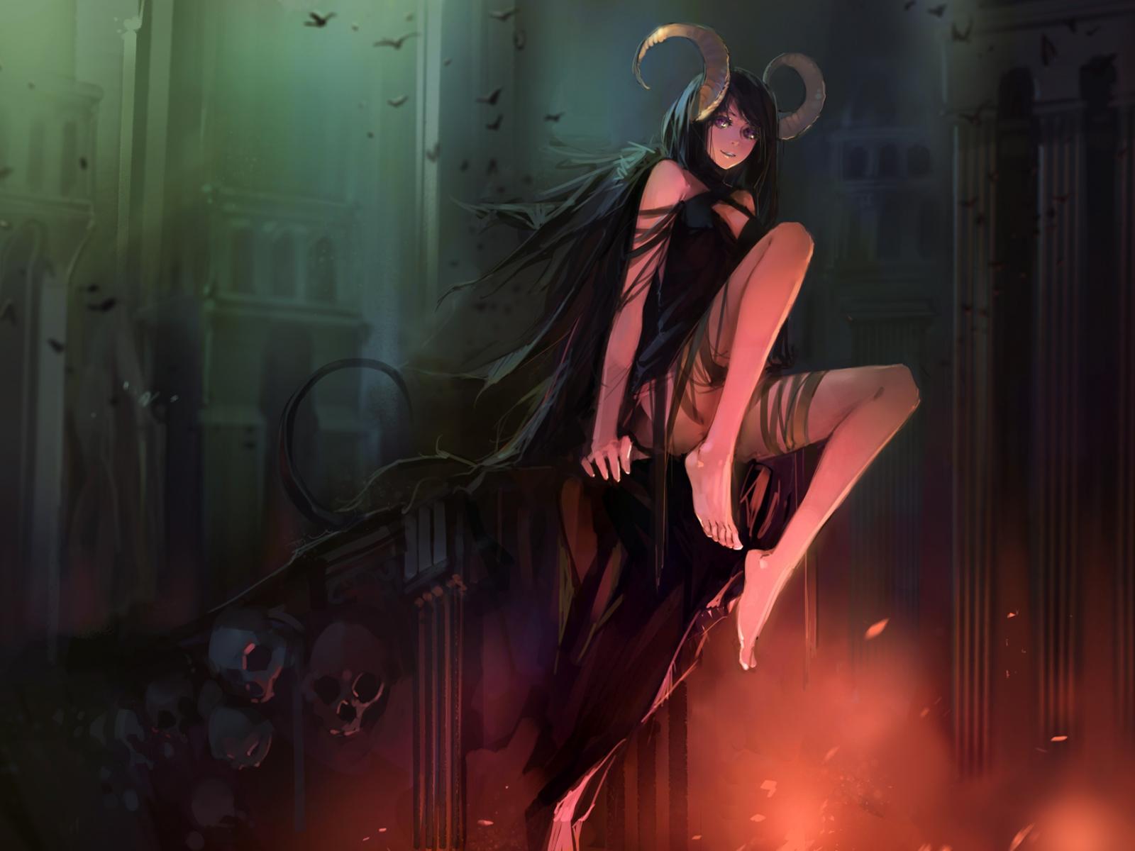 Wallpaper Witch ram with horns, anime