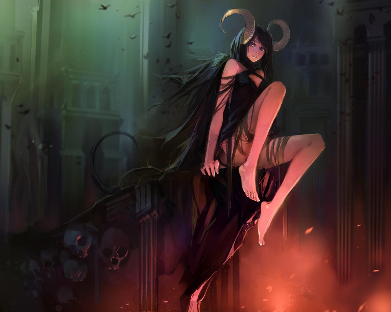 Wallpaper Witch ram with horns, anime