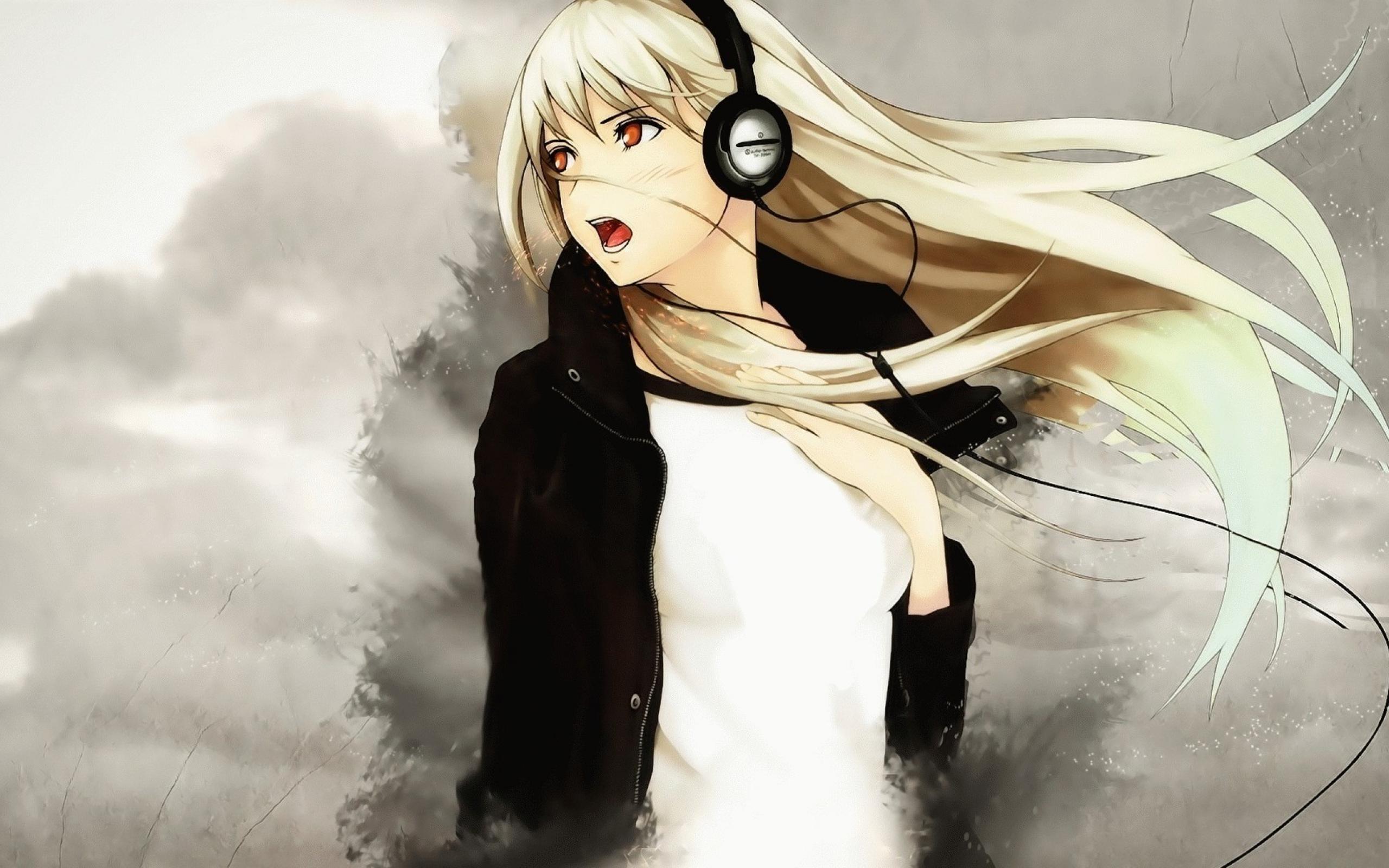 Wallpaper Anime blonde in headphones