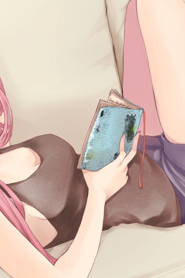 Wallpaper Anime girl with glasses reads his diary