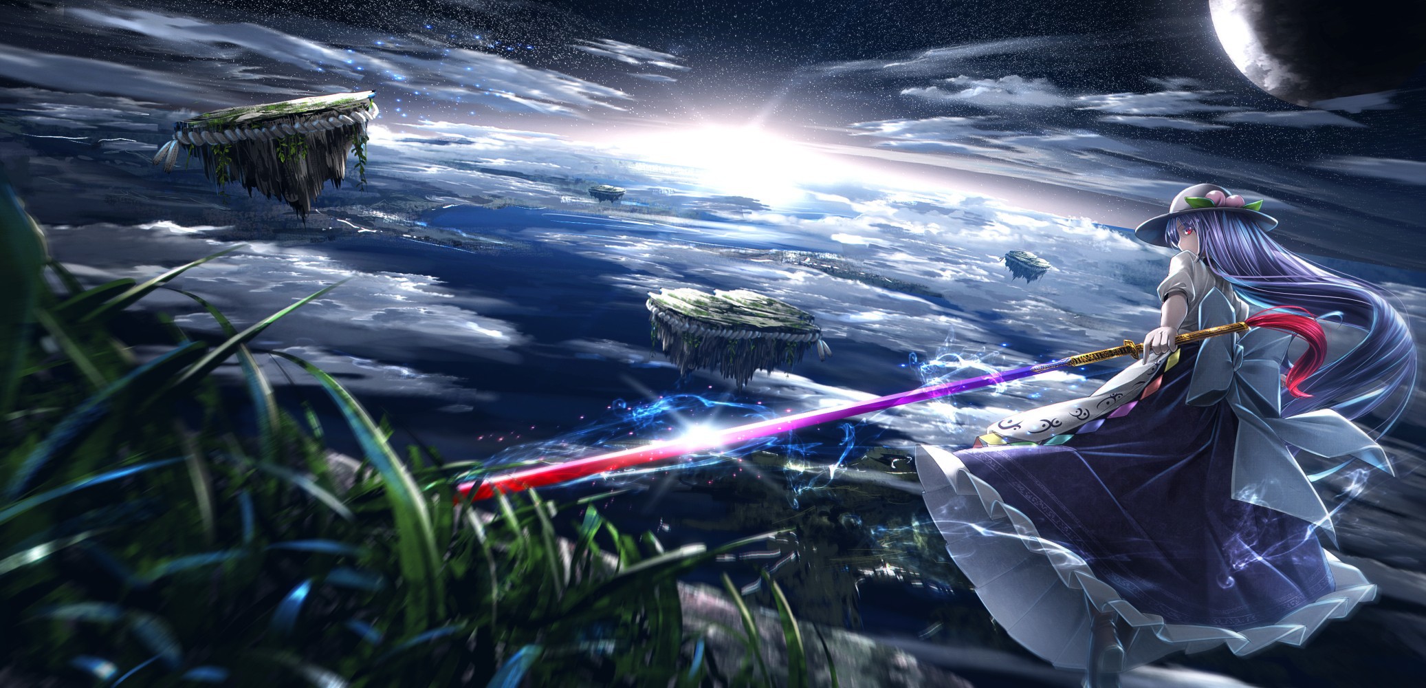 Wallpaper Bishop flying islands in the anime Hinanawi Tenshi