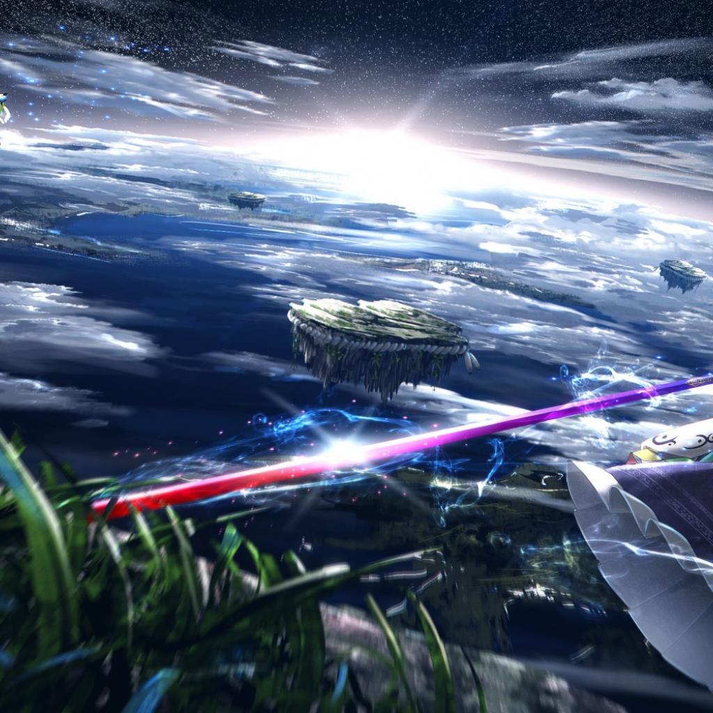 Wallpaper Bishop flying islands in the anime Hinanawi Tenshi