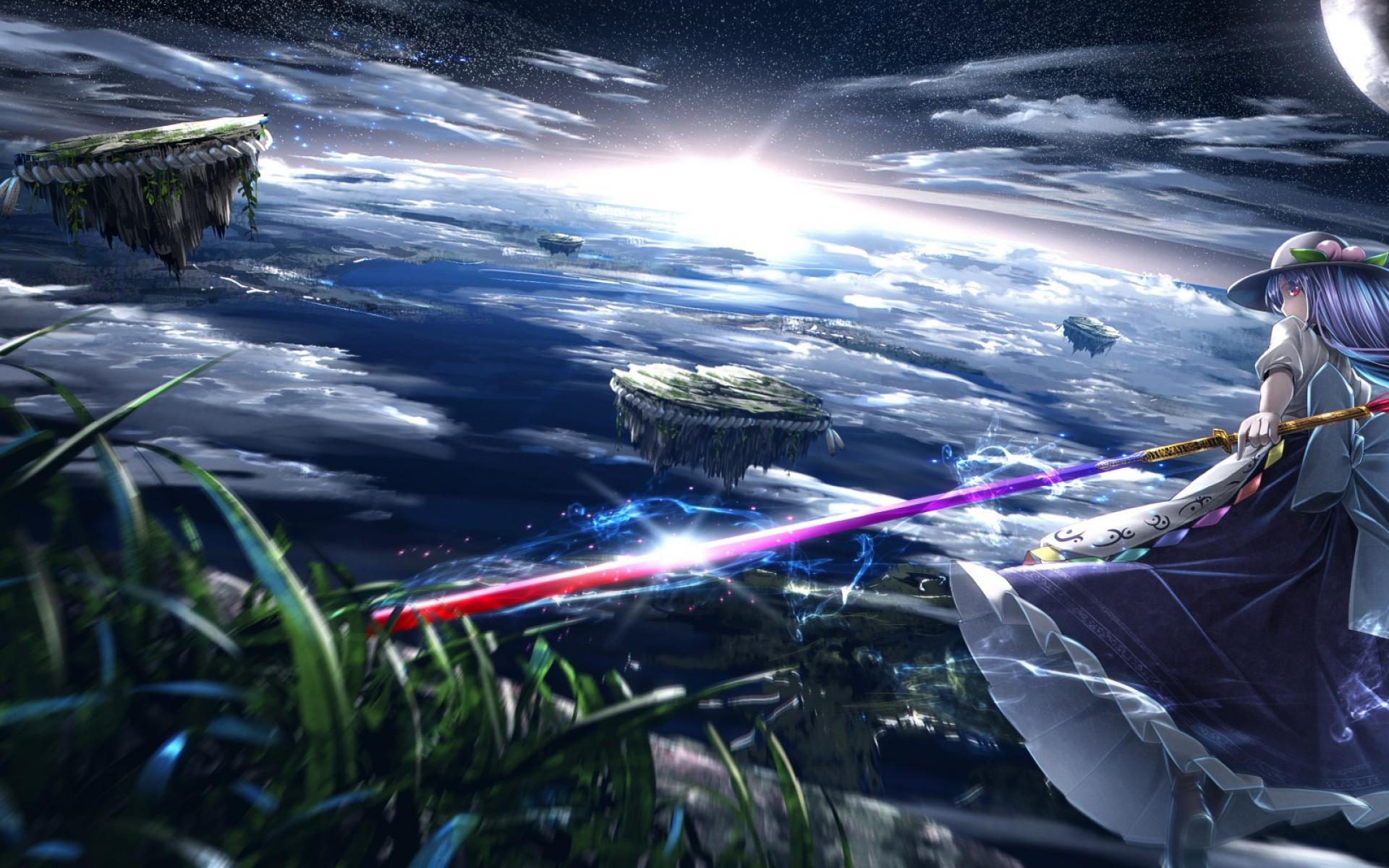 Wallpaper Bishop flying islands in the anime Hinanawi Tenshi