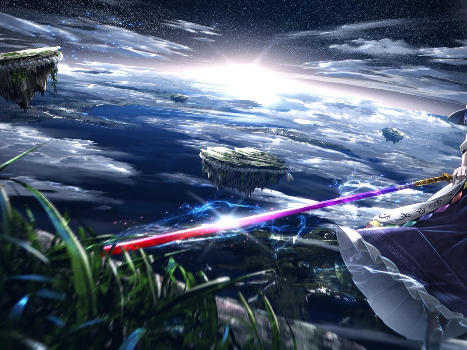 Wallpaper Bishop flying islands in the anime Hinanawi Tenshi