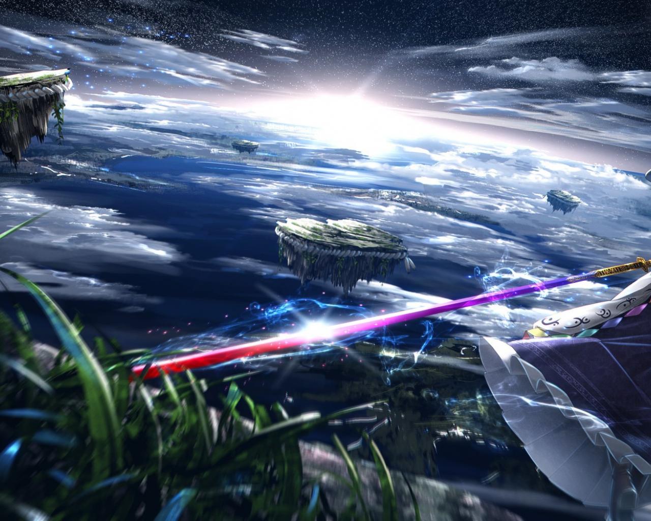 Wallpaper Bishop flying islands in the anime Hinanawi Tenshi