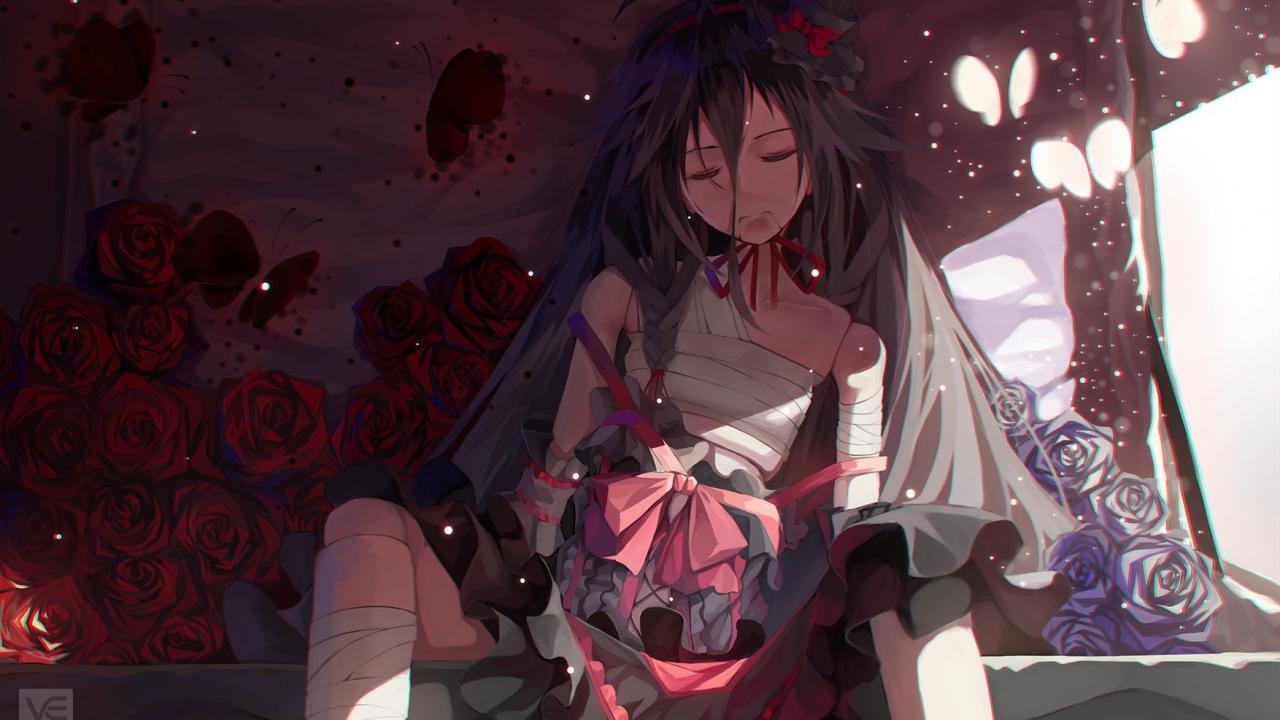 Wallpaper Sad Vocaloid among the roses
