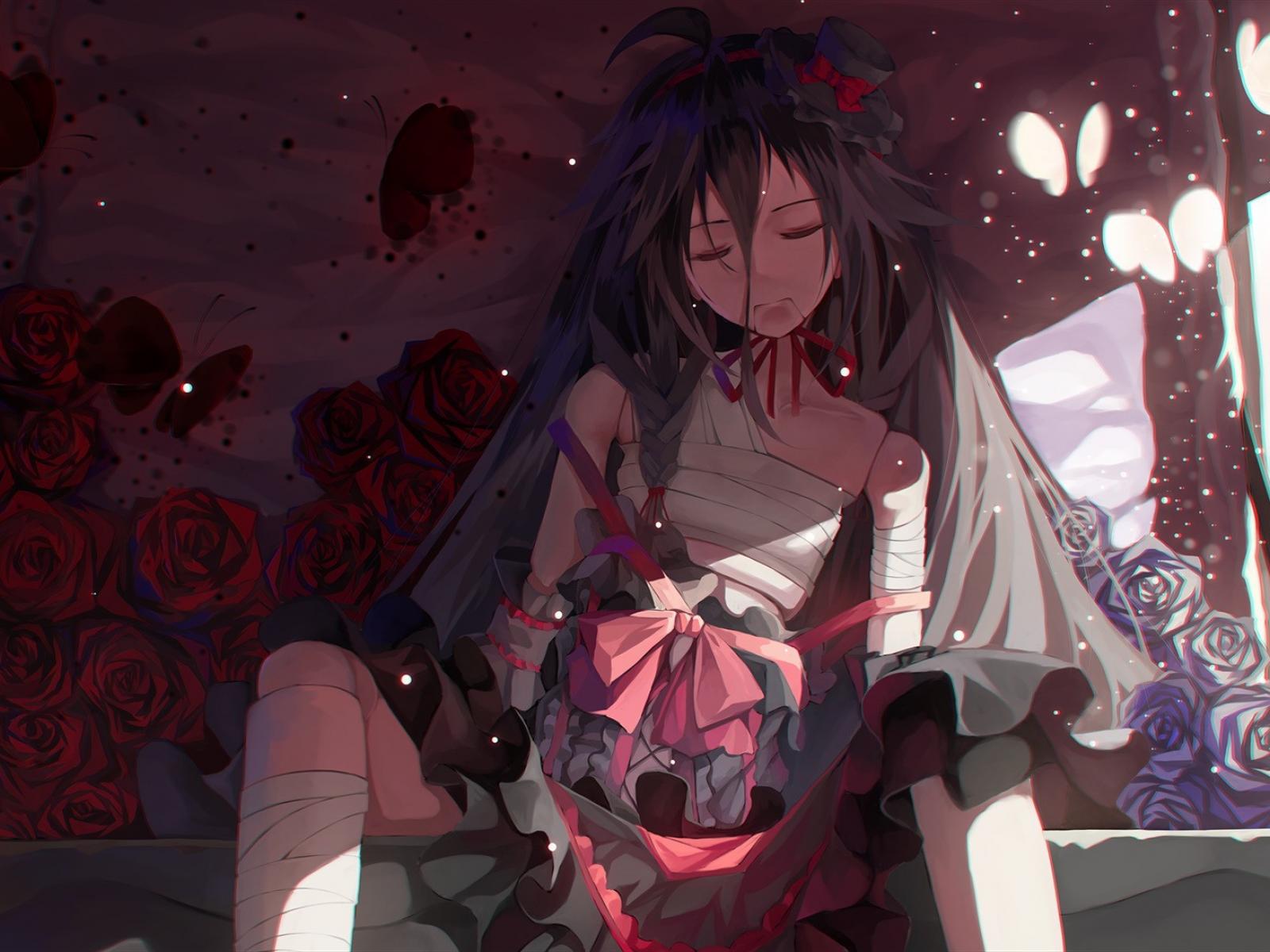 Wallpaper Sad Vocaloid among the roses