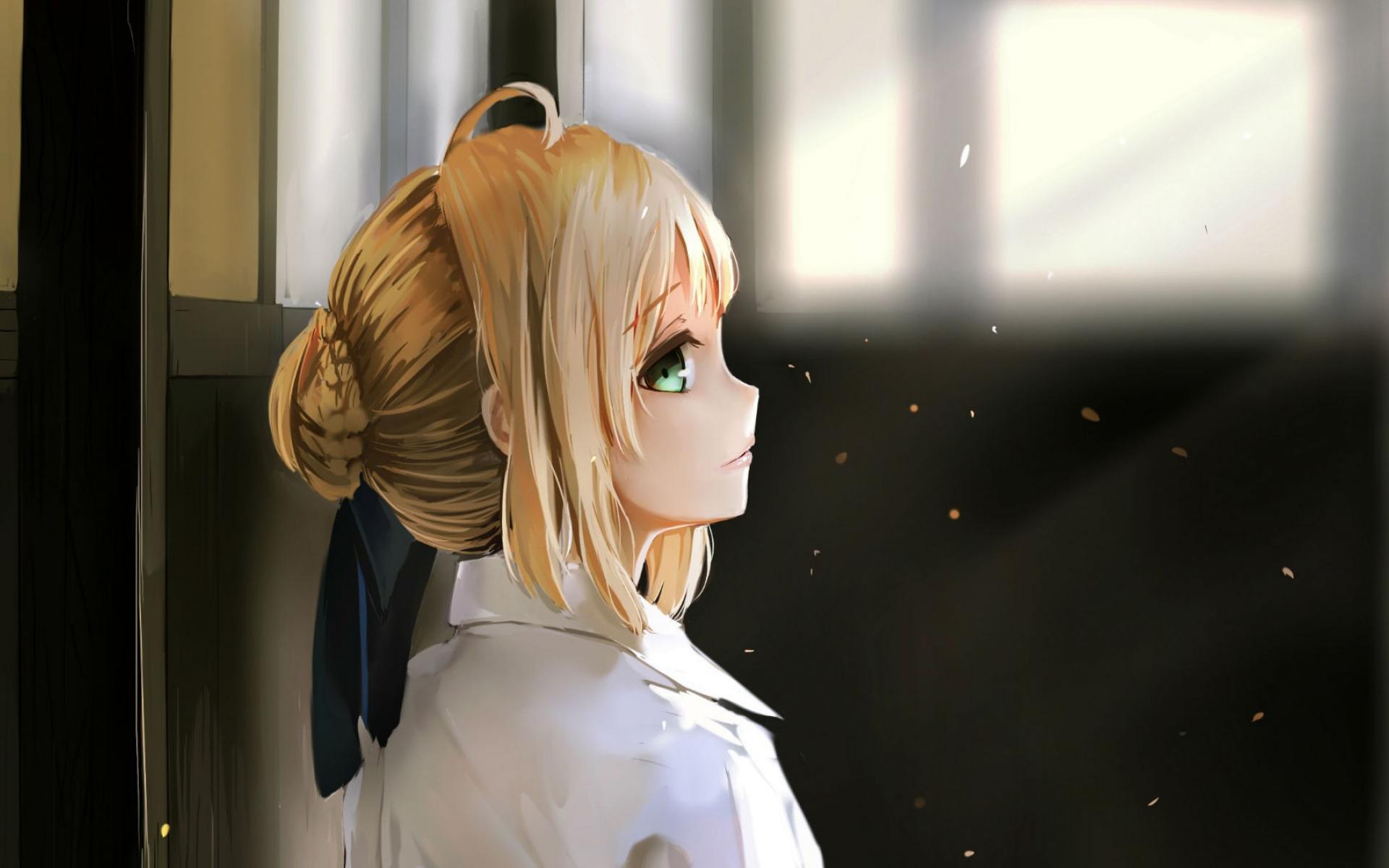 Wallpaper Anime girl looking up, Night Arrival