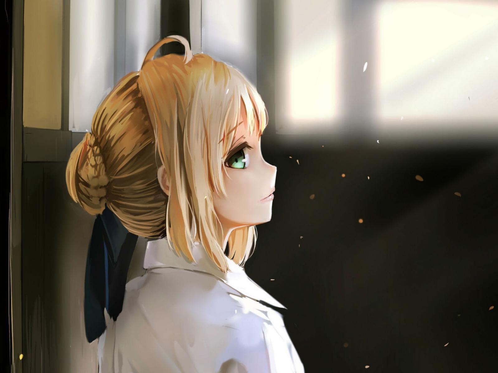 Wallpaper Anime girl looking up, Night Arrival