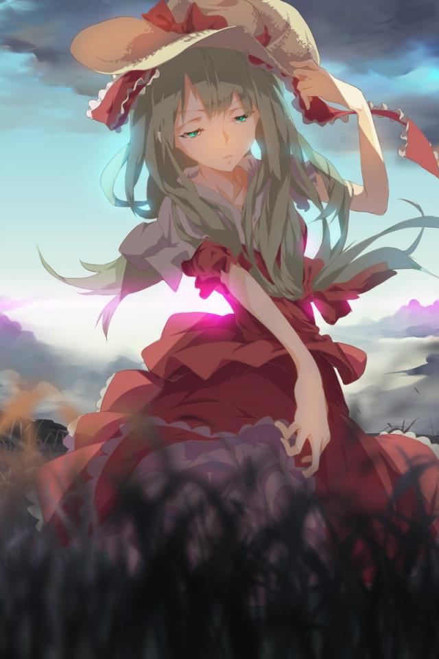 Wallpaper The girl in the hat is on the field, anime Kagiyama Hina