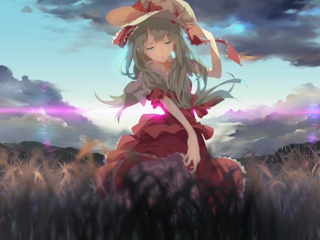 Wallpaper The girl in the hat is on the field, anime Kagiyama Hina