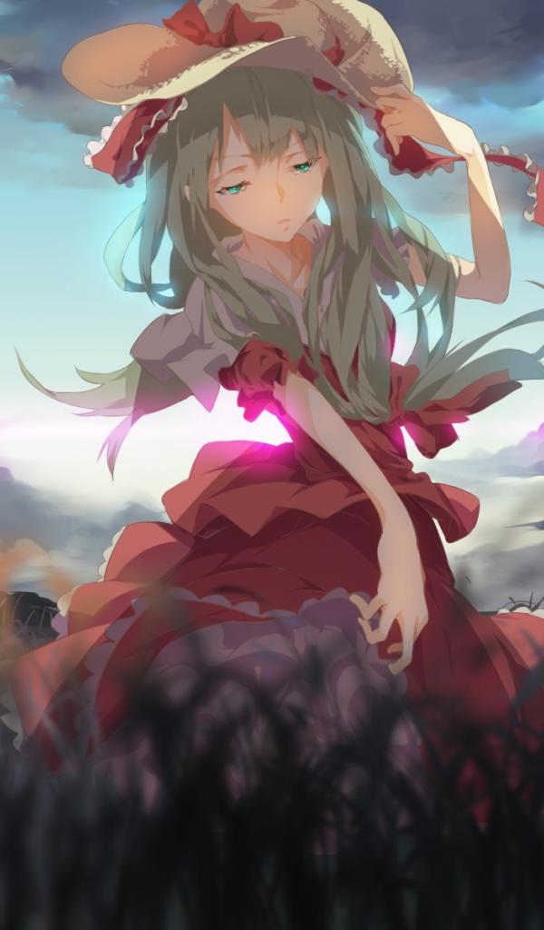 Wallpaper The girl in the hat is on the field, anime Kagiyama Hina